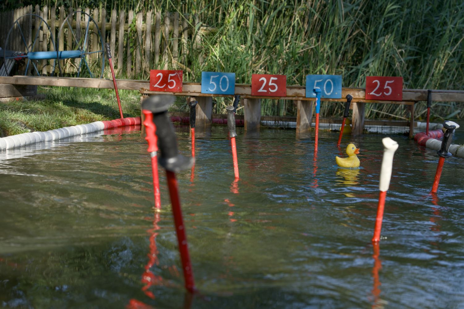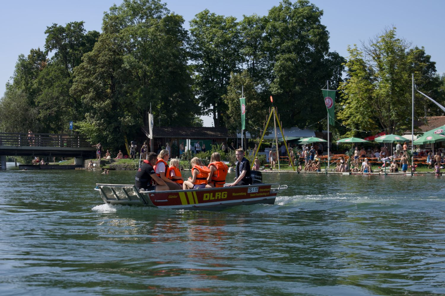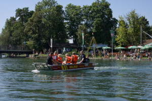 Ein weiterer Höhepunkt war das alljährliche Badeenten-Rennen, das heuer aufgrund des erhöhten Wasserstands der Alz besonders rasant verlief. Bei erreichen einer entsprechenden Punktzahl konnten sich die Teilnehmerinnen und Teilnehmer über eine rasante Bootsfahrt mit einem der beiden Rettungsboote auf der Alz freuen.
